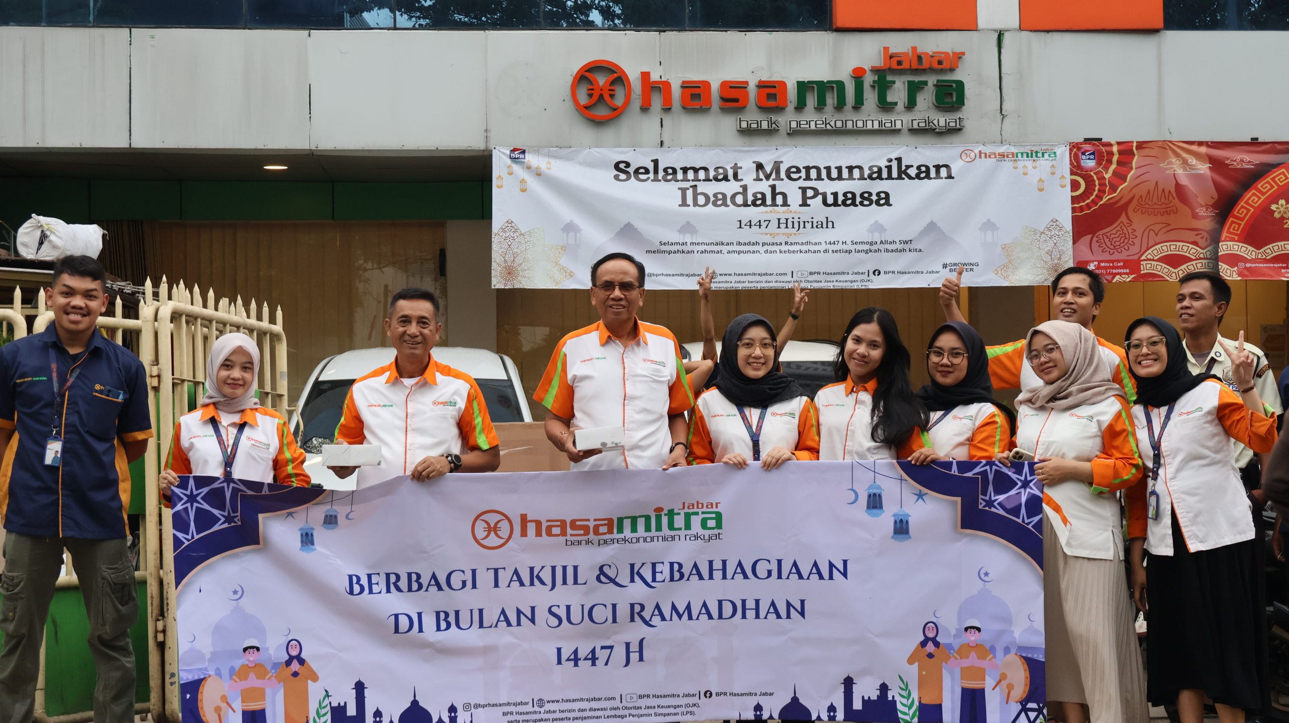 Depok — Dalam semangat berbagi di bulan suci Ramadan, BPR Hasamitra Jabar menggelar kegiatan sosial berupa pembagian takjil kepada masyarakat yang melintas di depan kantor perusahaan di Jalan Margonda Raya, Depok. Kegiatan ini dilaksanakan pada 4 dan 11 Maret 2026 dan diikuti oleh seluruh karyawan perusahaan.